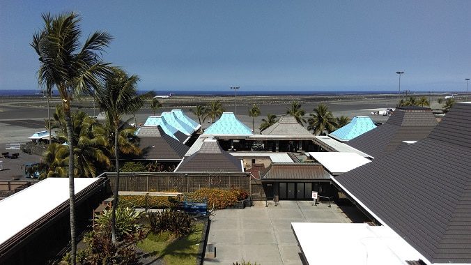 Long after other airports in Hawaiʻi converted their terminals to modernized multi-story buildings with automated jetway systems, the Kona airport has a very Hawaiian look and feel to welcome passengers. There are no large hallways or multistory buildings, just a collection of huts that greets visitors to let them know they have come to paradise. Further the airport’s charm, KOA is the only remaining major airport in the Hawaiian Islands where a mobile ramp is used to plane and deplane passengers.