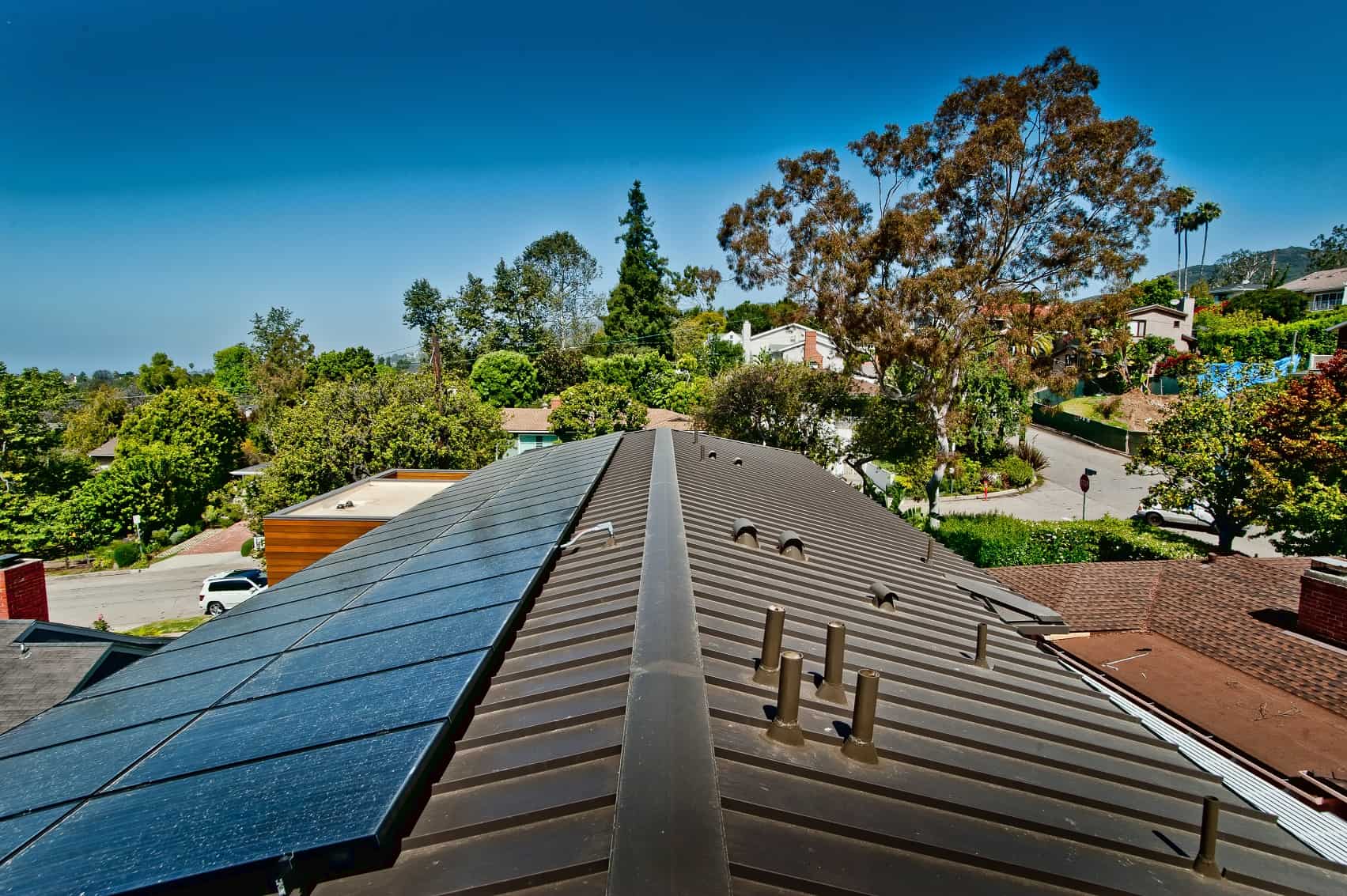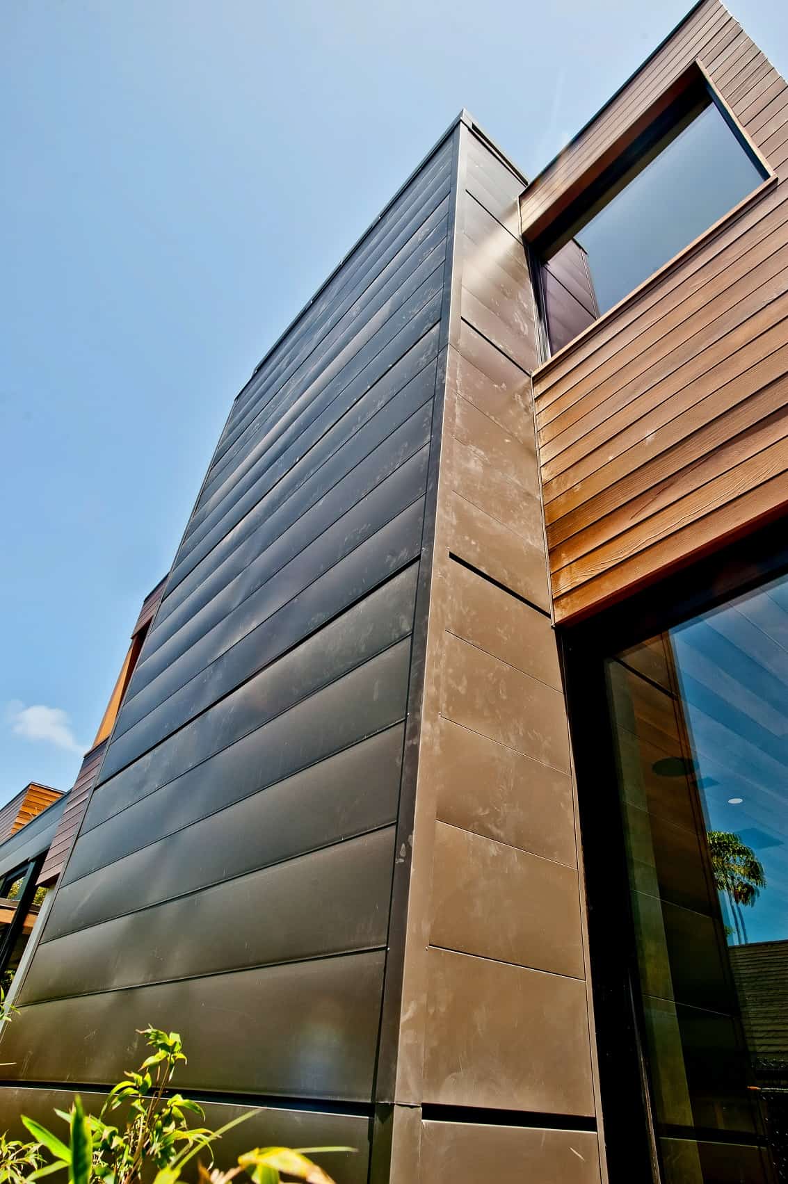 Custom-Bilt Metals systems bring out the beauty of the designer’s vision of modern high end residential design that is environmentally clean and conscious. The design included our 24 gauge CB-150 Roof Panels, & WS-100 wall and soffit panels in PVDF cool roof musket paint. (Photos courtesy of: www.lathamarchitectural.com)